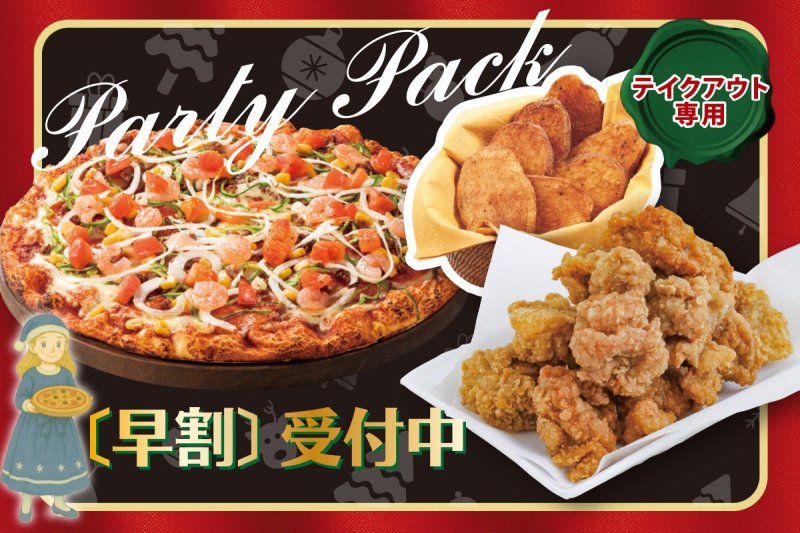 2025년 12월 2일 기간 한정 《셋이 유익》 파티 팩 피자의 세트가 유익한 《파티 팩》이 기간 한정으로 등장 예약은 아래의 점포에서 접수중!・세이세키사쿠라가오카점・신주쿠 세노빌딩점・이케부쿠로히가시구치점・기치조지점・이온 몰 자마점・요코하마 니시구치점・라라포토 TOKYO-BAY점・FKD 우쓰노미야 인터파크점・요미우리랜드점 점포 일람은 이쪽