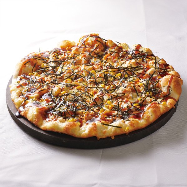 테리야키 치킨 피자와의 맛.일본의 피자.